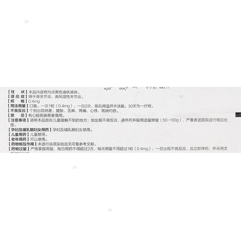 通用名称:草乌甲素软胶囊