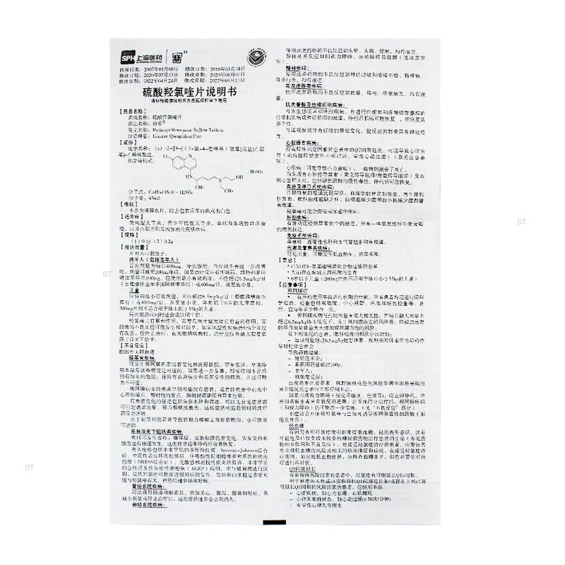通用名称:硫酸羟氯喹片