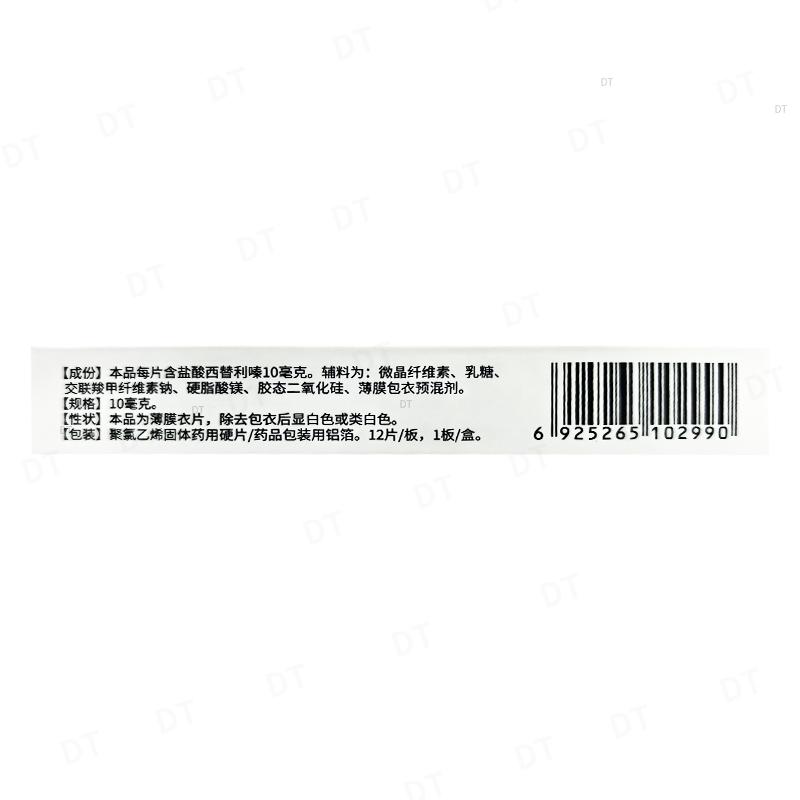 本品主要成份盐酸西替利嗪。