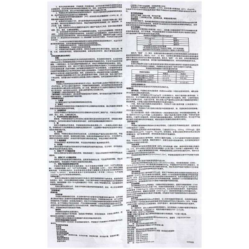 通用名称:*甲硝唑片