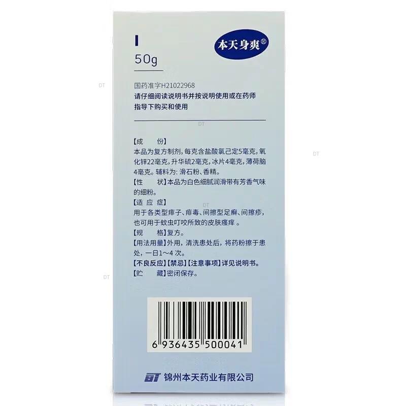 本品用于各类型痱子、痱毒、间擦型足癣、间擦疹,也可用于蚊虫叮咬所致的皮肤瘙痒。