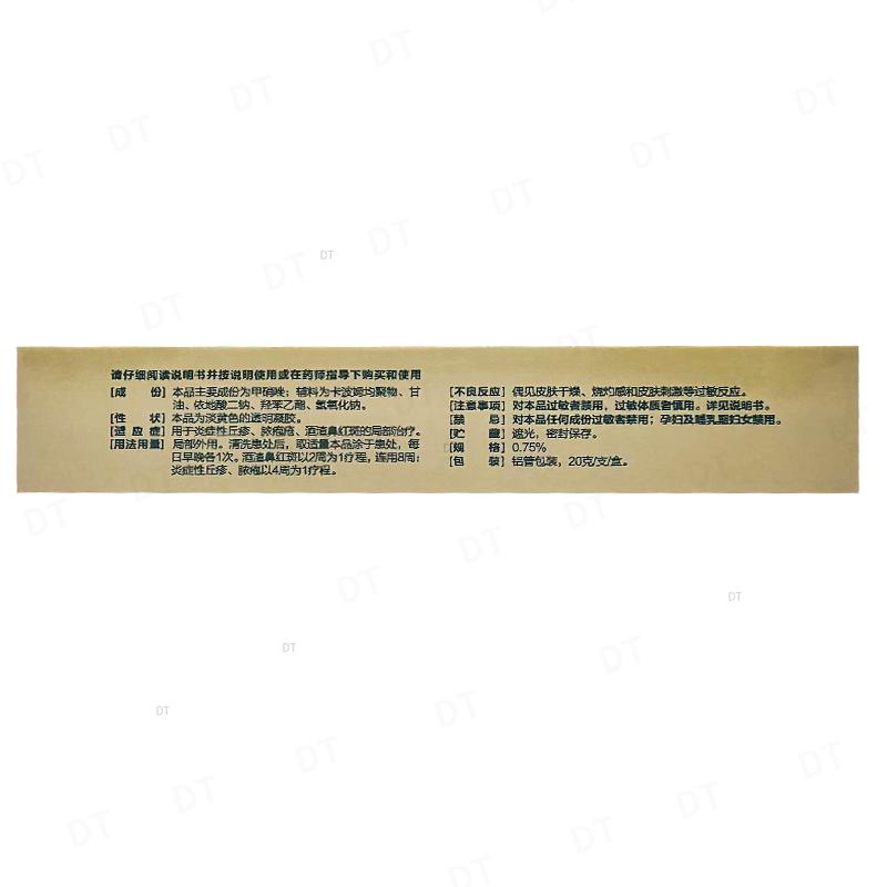 本品用于炎症性丘疹、脓疱疮、酒渣鼻红斑的局部治疗。