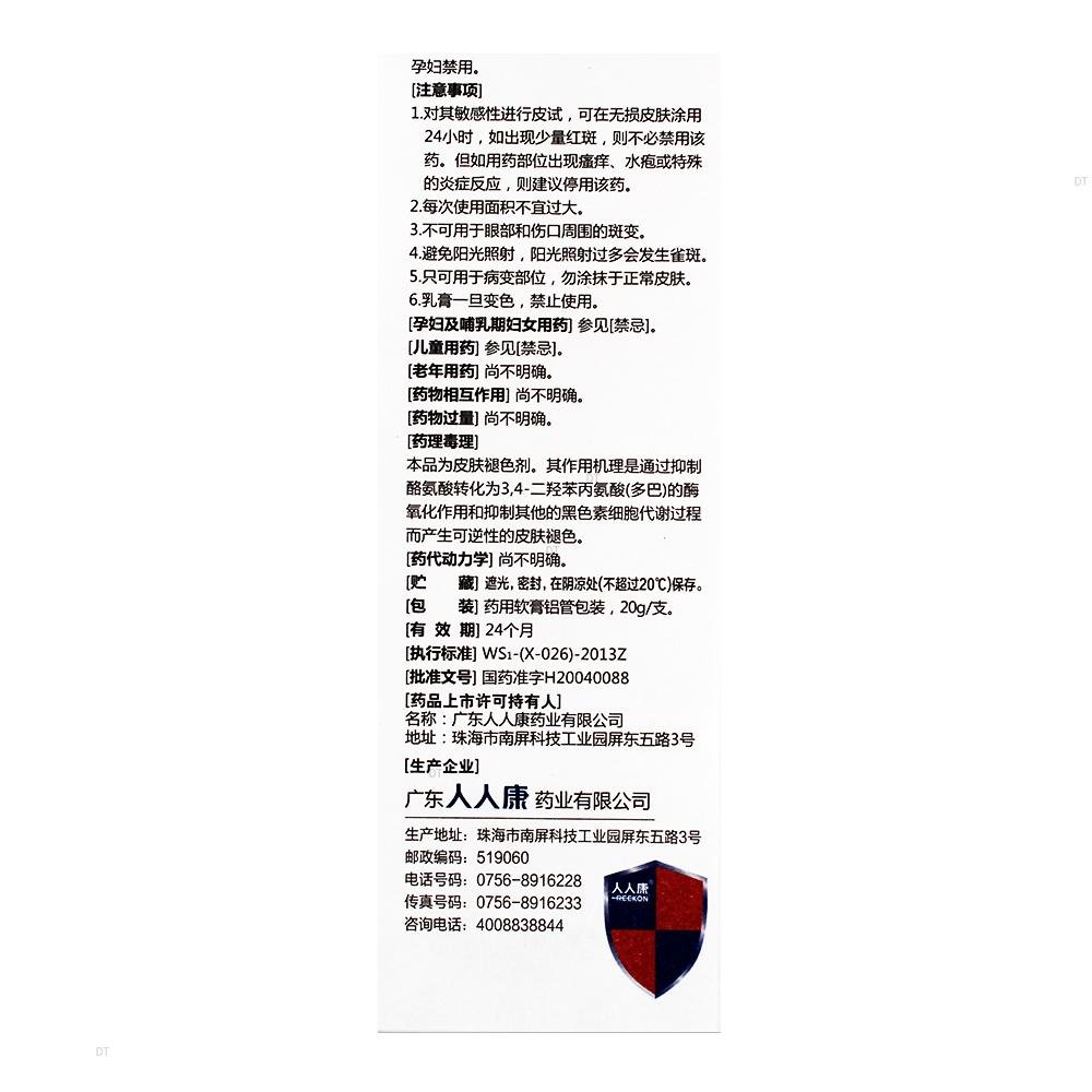 本品用于黄褐斑、雀斑及炎症后色素沉着斑的治疗。