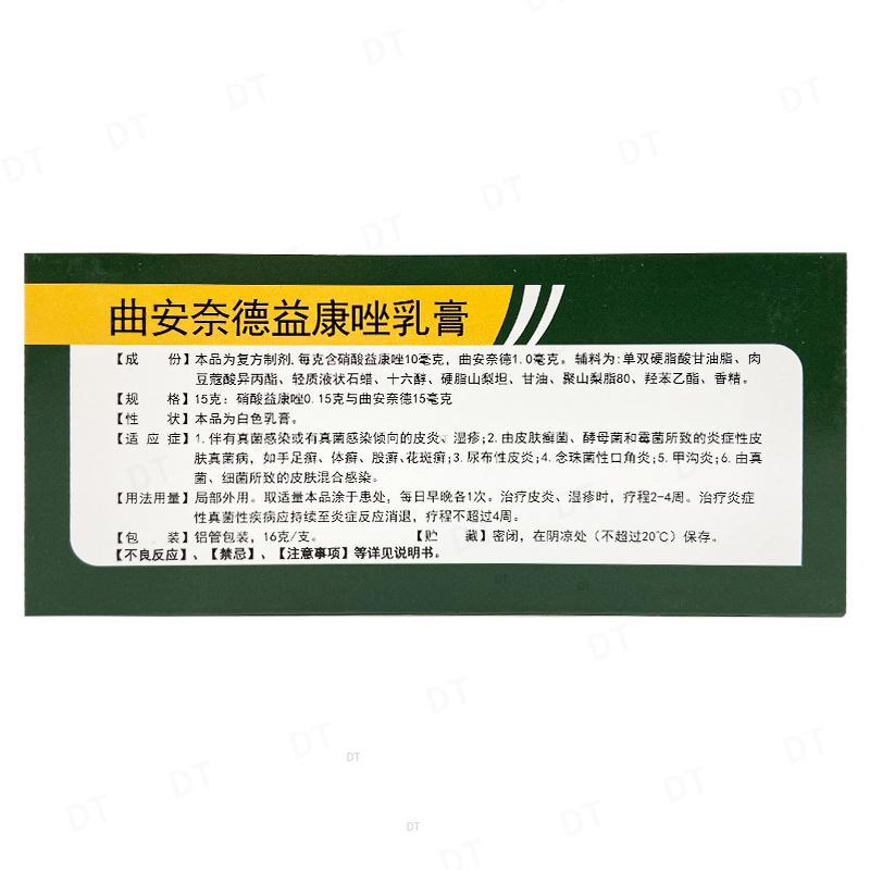 本品为复方制剂,每克含硝酸益康唑10毫克、曲安奈德1.0毫克。