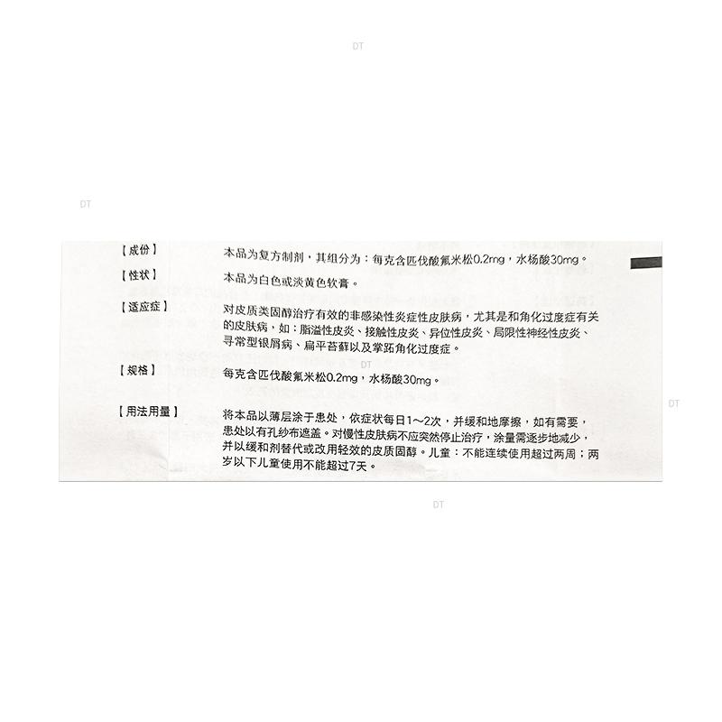 本品为复方制剂,匹伐酸氟米松,水杨酸。