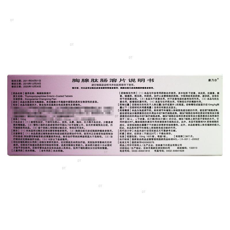 通用名称:胸腺肽肠溶片