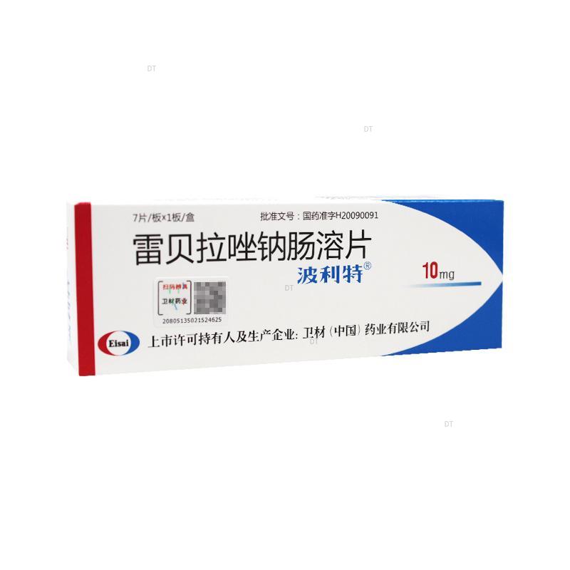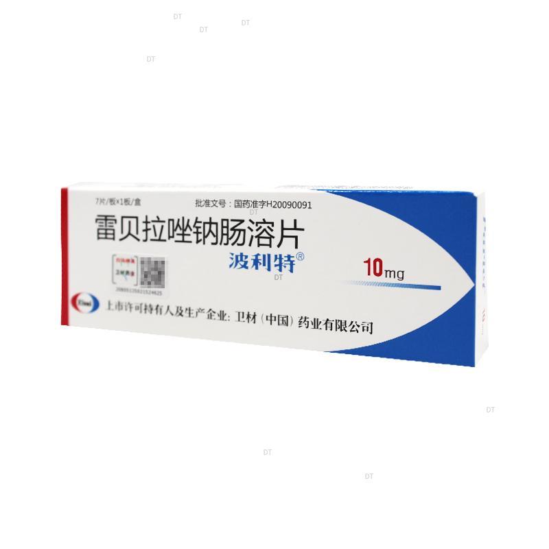 雷贝拉唑为苯并咪唑类化合物,是第二代质子泵抑制剂,通过特异性地抑制胃壁细胞H+,K+-ATP酶系统而阻断胃酸分泌的最后步骤。该作用呈剂量依赖性,并可使基础胃酸分泌和刺激状态下的胃酸分泌均受抑制。本品为对胆碱和组胺H2受体无拮抗作用。