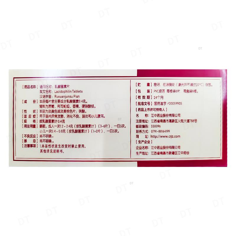 通用名称:乳酸菌素片(OTC)