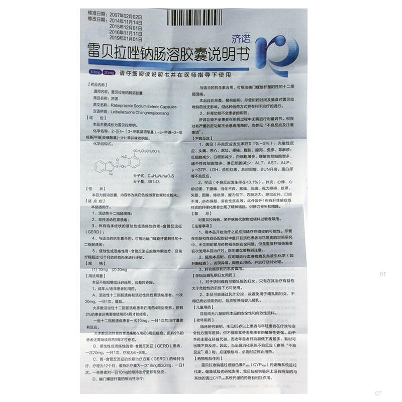 通用名称:雷贝拉唑钠肠溶胶囊
