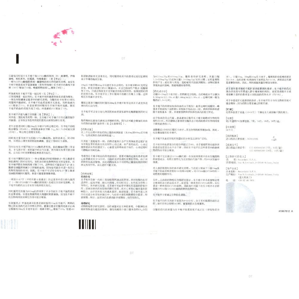 同时处方乐卡地平与其他CYP3A4酶底物,如特非那定、阿司咪唑、III类抗心律失常药物如胺碘酮、奎尼丁等时应当谨慎。