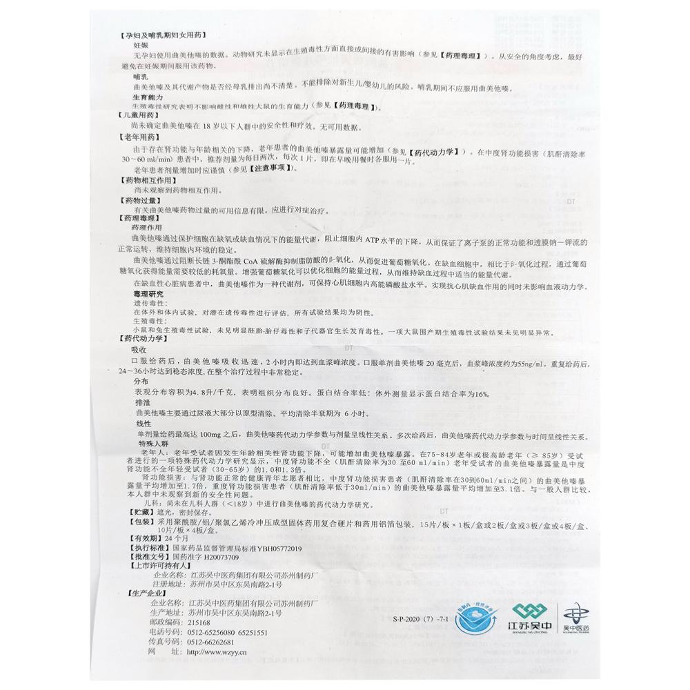 通用名称:盐酸曲美他嗪片