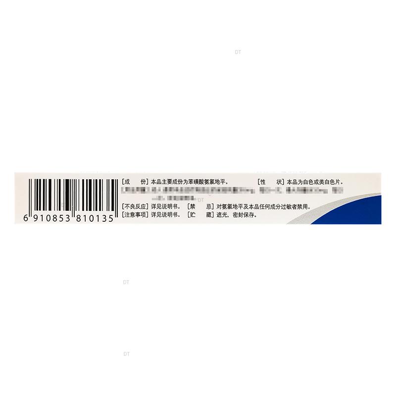 本品主要成份为苯磺酸氨氯地平。化学名称:3-乙基-5-甲基-2-(2-氨基乙氧甲基)-4-(2-氯苯基)-1,4-二氢-6-甲基-3,5-吡啶二羧酸酯苯磺酸盐。