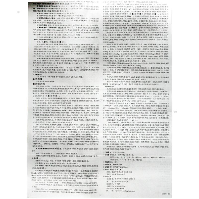 型号:150mg/12.5mg*7片*1板/盒(薄膜衣片)