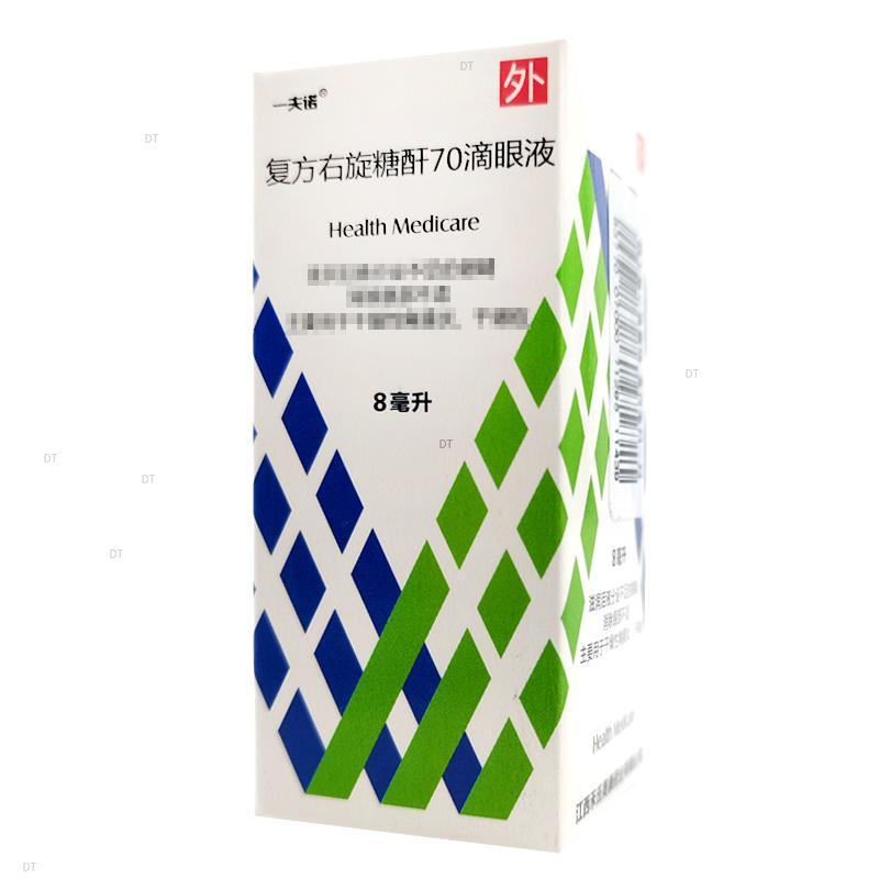 右旋糖酐70相对分子量与人血白蛋白相近,具有提高血浆胶体渗透压、增加血浆容量和维持血压的作用。可使聚集的血小板解聚,防止血栓形成。羟丙甲纤维素是纤维素的部分甲基和部分聚羟丙基醚,它可溶于冷水中形成具有一定粘性的溶液,其性质与泪液中的粘弹性物质(主要是粘蛋白)接近,因此,可以作为人工泪液来使用。本品模拟天然泪液。