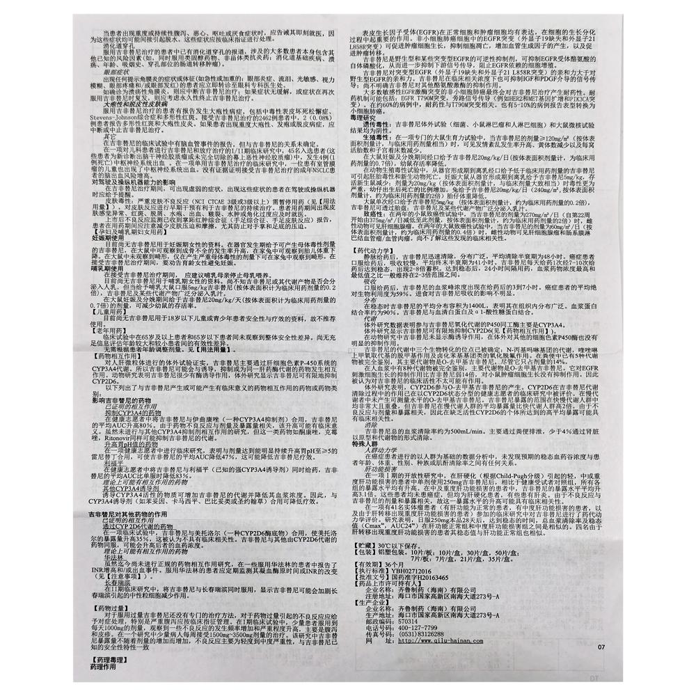 通用名称:*吉非替尼片