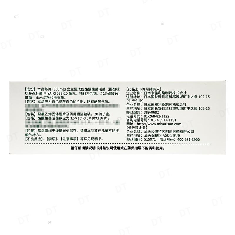 生产企业:日本米雅利桑制药株式会社(汕头经济特区明治医药有限公司分包装)/日本米雅利桑制药株式会社