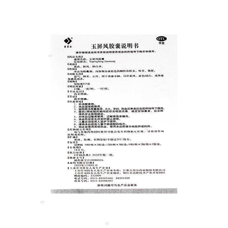 通用名称:玉屏风胶囊(OTC)