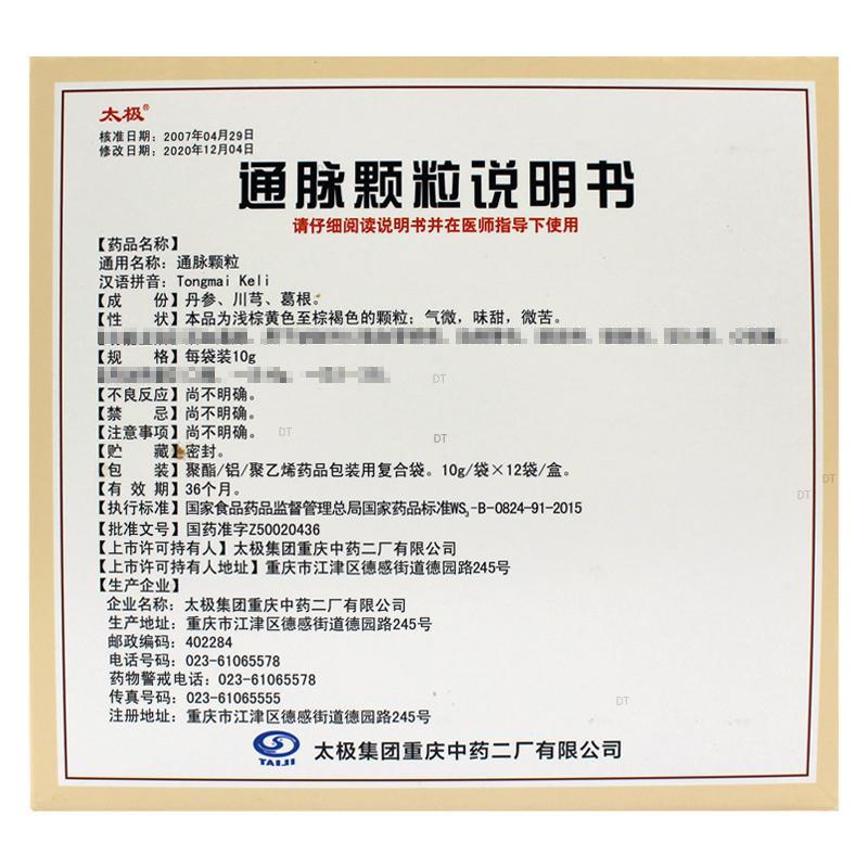 通用名称:通脉颗粒
