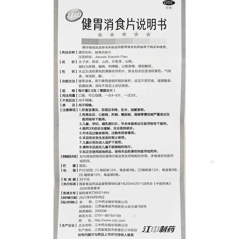 通用名称:健胃消食片(OTC)
