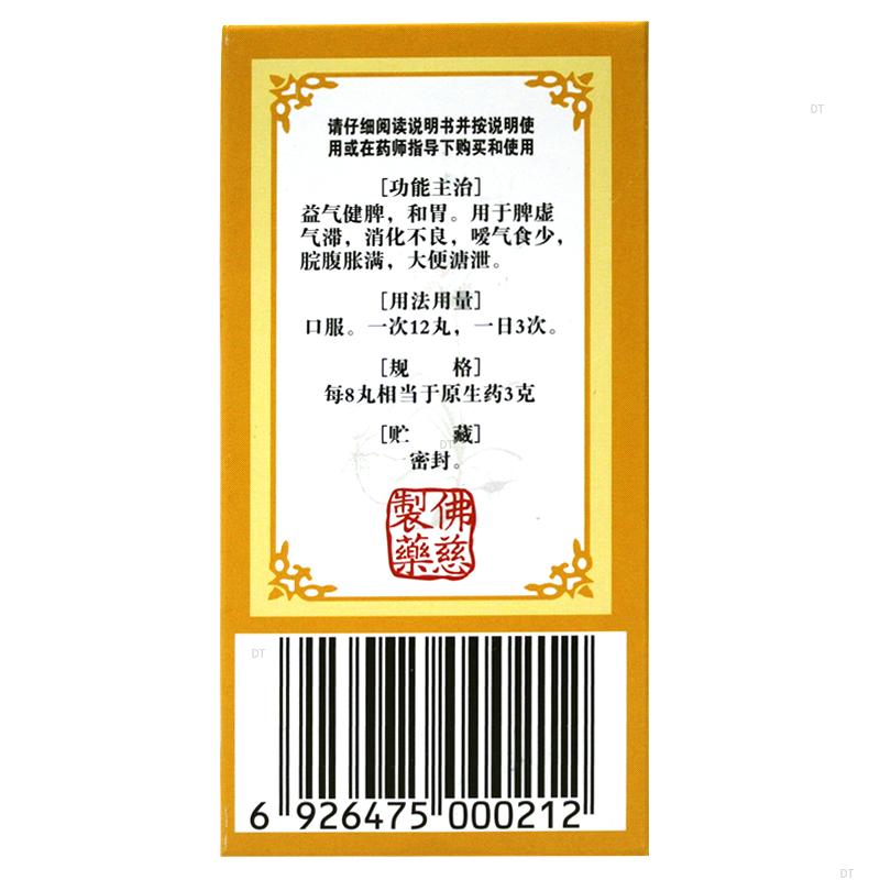 本品主要成分为主要成分:木香、砂仁、人参、白术(炒)、茯苓、炙甘草、陈皮、半夏(制)、生姜、大枣。