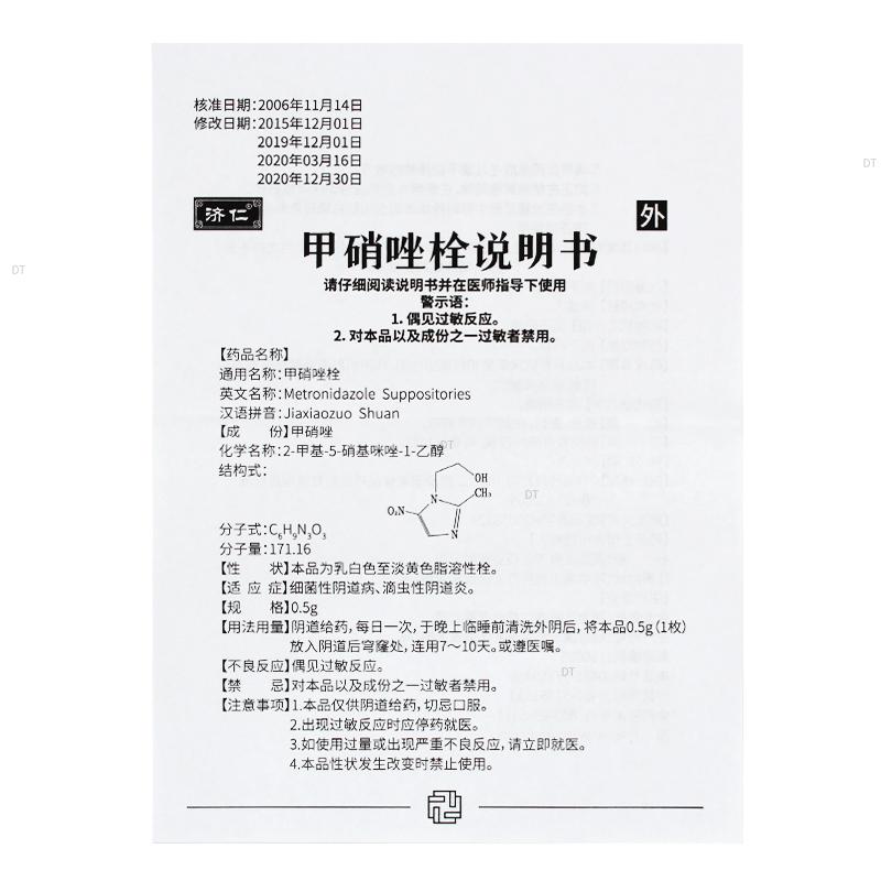 通用名称:甲硝唑栓