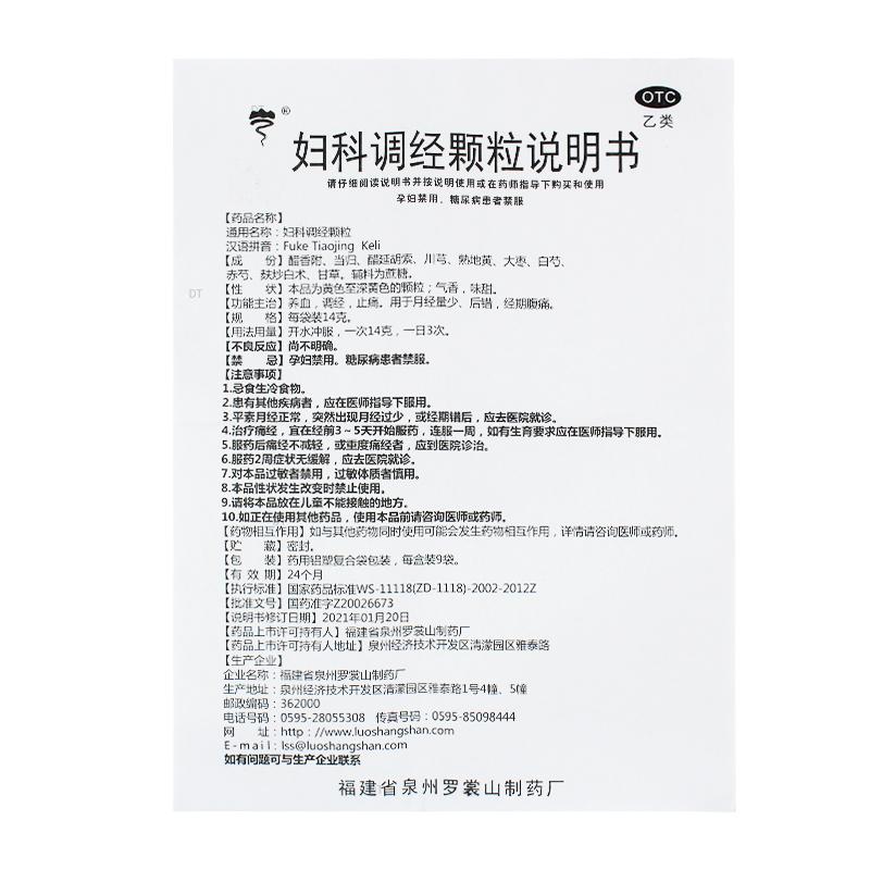 通用名称:妇科调经颗粒(OTC)