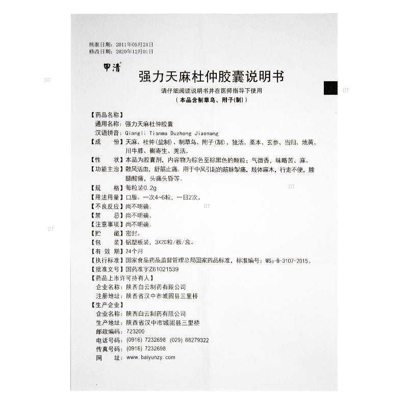 通用名称:强力天麻杜仲胶囊