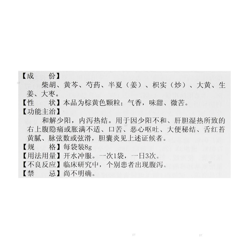 和解少阳,内泻热结。用于因少阳不和、肝胆湿热所致的右上腹隐痛或胀满不适、口苦、恶心呕吐、大便秘结、舌红苔黄腻、脉弦数或弦滑,胆囊炎见上述证候者。