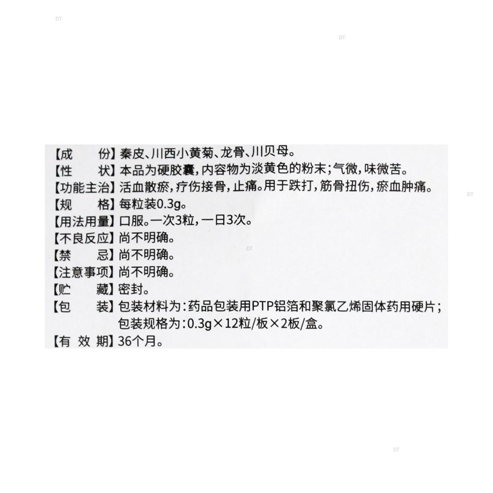 通用名称:秦皮接骨胶囊