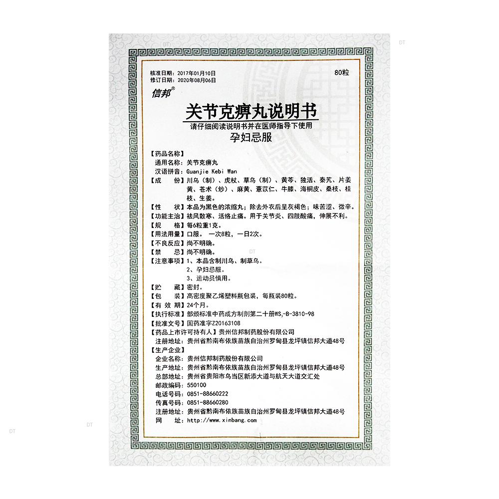 通用名称:关节克痹丸