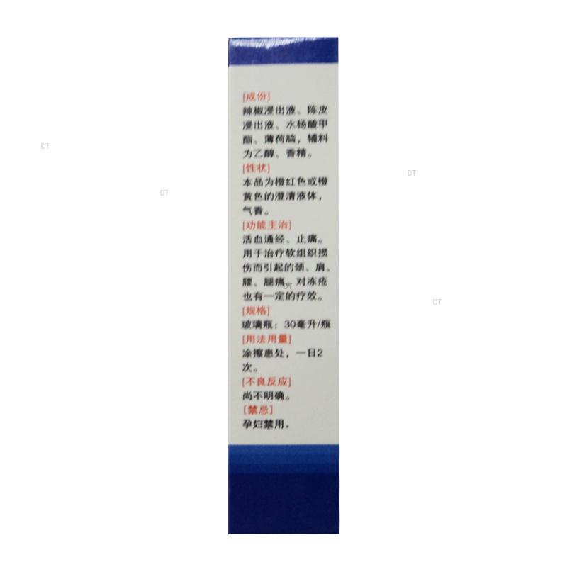活血通经、止痛。用于治疗软组织损伤而引起的颈、肩、腰、腿痛。对冻疮也有一定疗效。