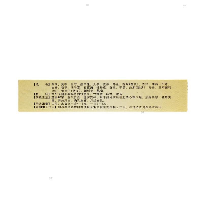 本品成分:柴胡、女贞子(酒炙)、白芍、墨旱莲、人参、牡丹皮。香附(醋炙)、当归、玄参、郁金、王不留行(炒)、法半夏等22味。