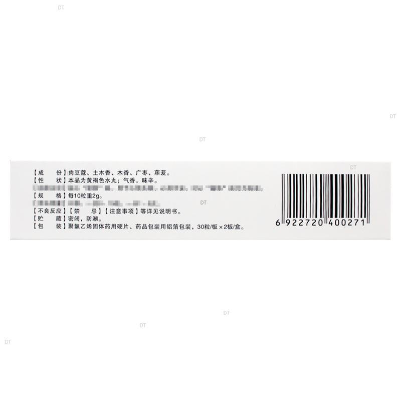 本品主要成分为肉豆蔻、土木香、木香、广枣、荜茇。
