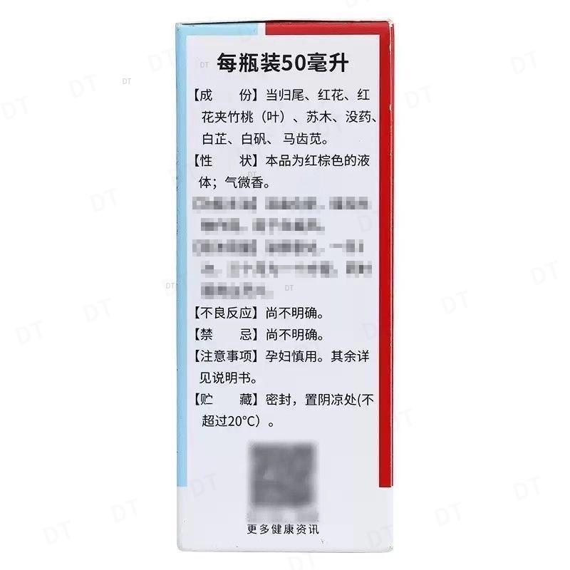 当归尾、红花、红花夹竹桃(叶)、苏木、没药、白芷、白矾、马齿苋。