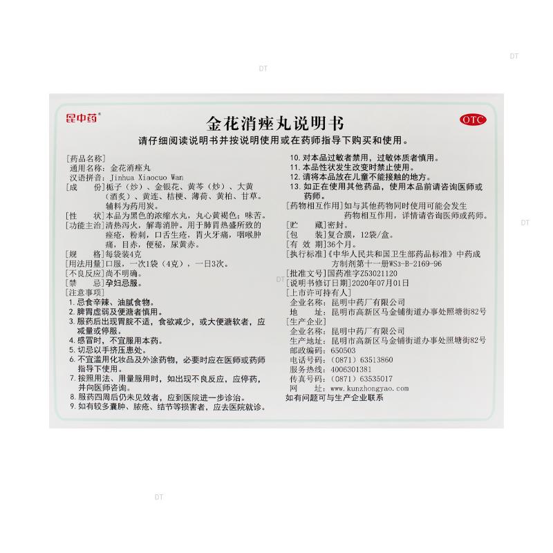 通用名称:金花消痤丸(OTC)