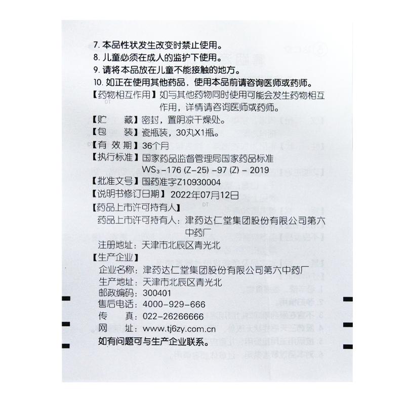 生产企业:津药达仁堂集团股份有限公司第六中药厂/津药达仁堂集团股份有限公司第六中药厂