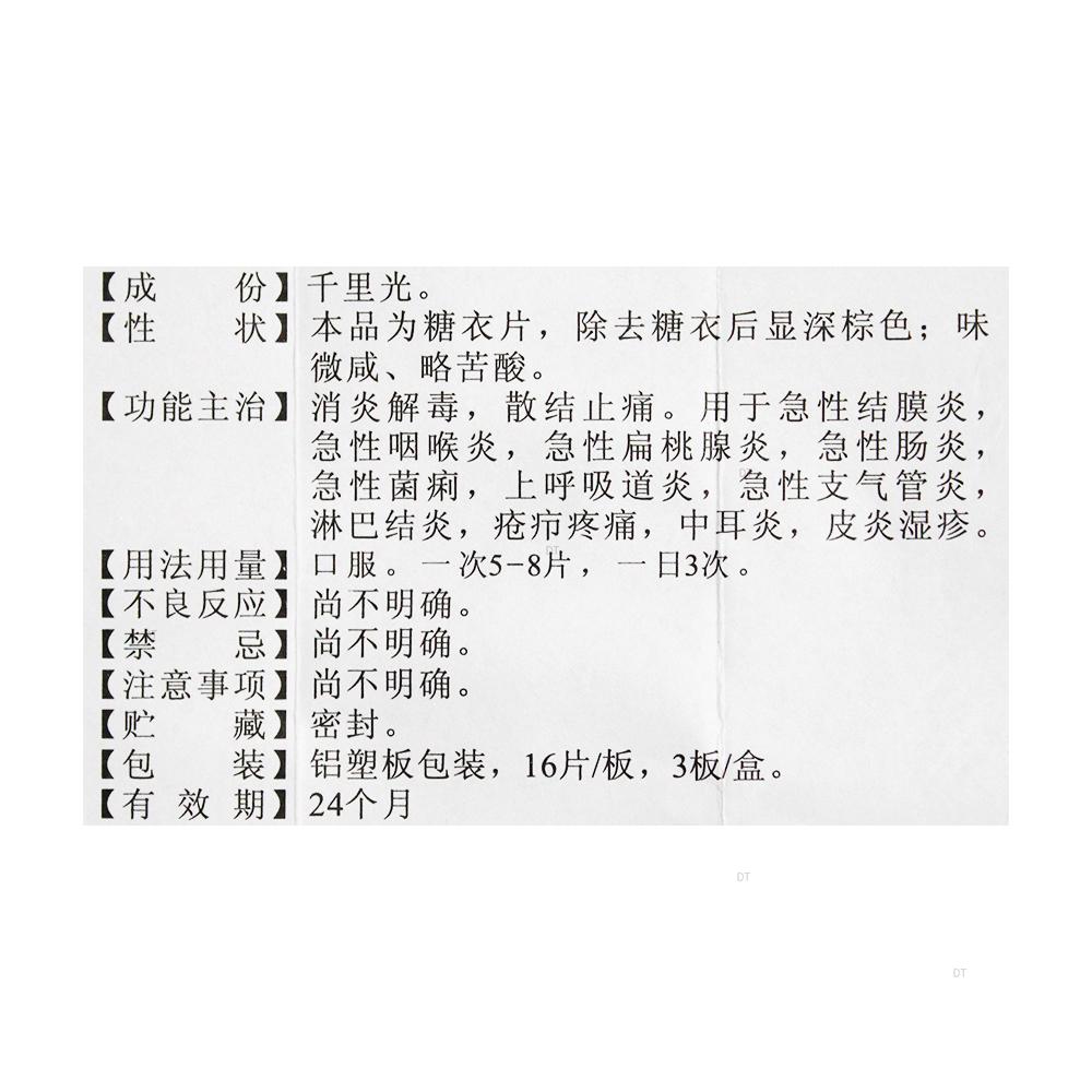 消炎解毒,散结止痛。用于急性结膜炎,急性咽喉炎,急性扁桃腺炎,急性肠炎,急性菌痢,上呼吸道炎,急性支气管炎,淋巴结炎,疮疖疼痛,中耳炎,皮炎湿疹。