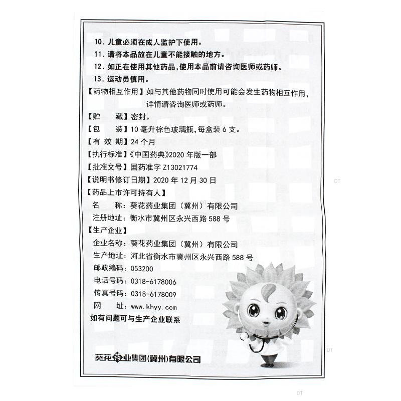 生产企业:葵花药业集团(冀州)有限公司/葵花药业集团(冀州)有限公司