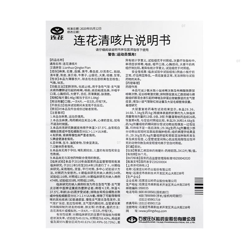 通用名称:连花清咳片